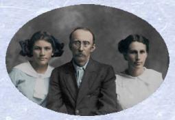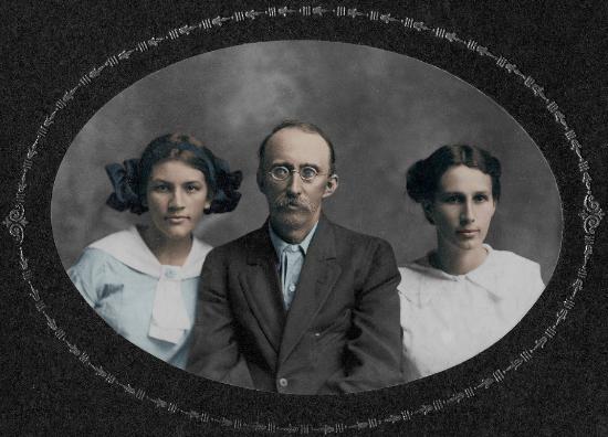| Elbert W. Stophel with two daughters, Kate and Alice from his marriage to Rosa Bell Houser |