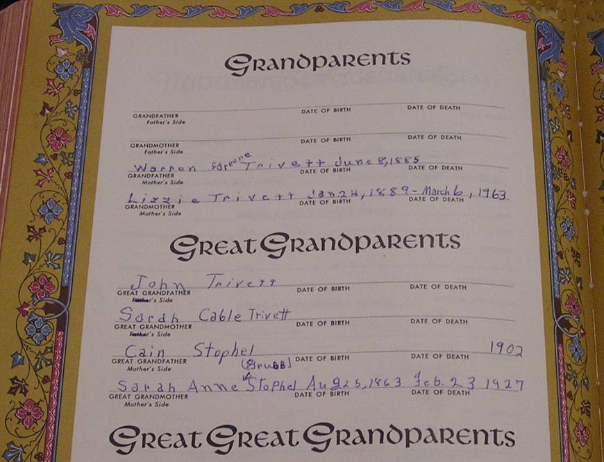 | Bible record of the marriage of Warren Trivett and Elizabeth Stophel |